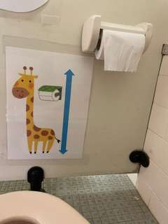 トイレにきりんのイラスト付きでトイレットペーパーの長さの目安を貼っているので、トイレをするときに見てみてね(^^)