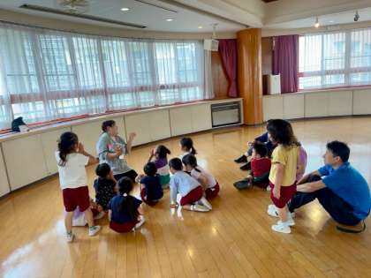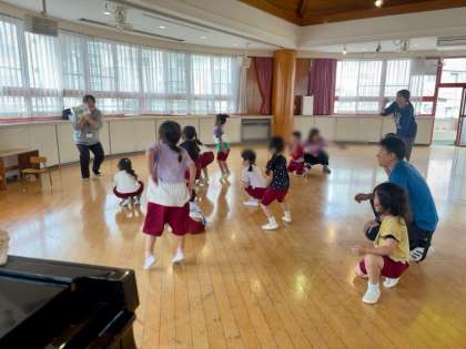今日の絵本は『からだをうごかすえほん』です!忍者に変身した5歳児は、修行をして悪者を倒せるかな?「やま!」「かわ!」「しゅりけん!」「くま!!」いろいろな技を覚えたね^_^