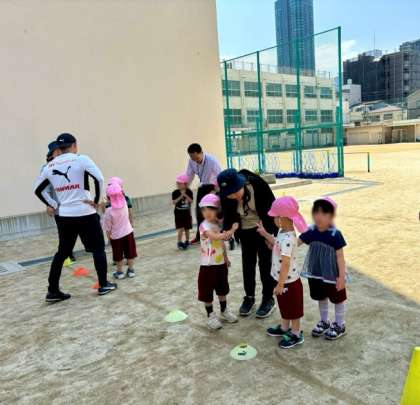 コーチのみなさんとまねっこジャンケンやお引越しゲーム、みんなでかけっこをしたり!!子どもたちが、「体を動かすって楽しいなあ!」「おもしろいな!もっとやりたい!」と感じてくれたら嬉しいです(^-^)v