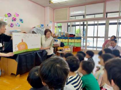 絵本の会がはじまるよ! 公開日 2024/05/29 更新日 2024/05/29 きょうのようちえん 北図書館から『絵本の会 北』のボランティアの方がお2人来園されました。大型絵本に紙芝居、パネルシアターに手遊びなど、今の季節に合ったお話をたくさん聞かせてくださいました♪ ありがとうございました(*^_^*) いいね(0)