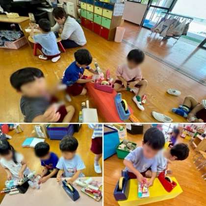 見立て遊びや手先を使った遊びが楽しくなってくる時期です。お家でもどうぞ☆