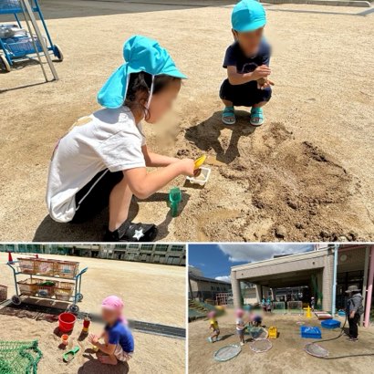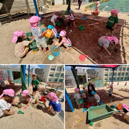耳鼻科検診を終えて、ホッとした子どもたち。思いきり水・泡・泥んこ・水鉄砲遊びを楽しみました!!