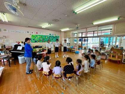 職場体験中! その1 公開日 2024/06/06 更新日 2024/06/06 きょうのようちえん 大淀中学校のお兄さんとお姉さんが、職場体験に来ました!! 挨拶をして、歌を歌って、遊んで、お弁当を食べて……少しずつ子どもたちと中学生の距離が近づいてきました(^-^)v いいね(0)