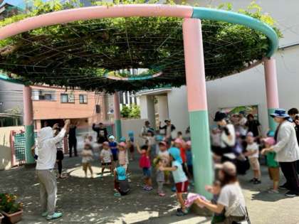 今日は、幼稚園でしている「うんこだすマンたいそう」にみんなで挑戦!!体やおなかをしっかり動かして遊びました♪
