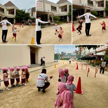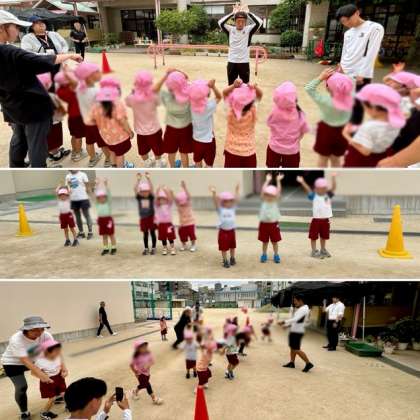 アスレチックパーク2回目(4歳児) 公開日 2024/06/17 更新日 2024/06/17 きょうのようちえん ?セレッソ大阪スポーツクラブのしまうまコーチとにっしーコーチが、遊びに来てくださいました! 今日は、初めてのヒーロージャンケンに挑戦ヽ(^o^)うさぎに変身して、うさぎジャンプをしたり、かけっこジャンプをしたり、今日も楽しい遊びがいっぱいでした☆ いいね(0)
