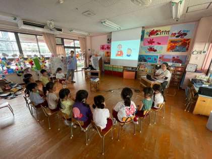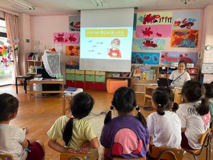 今日は、生憎の雨でプールが中止になってしまったので、年長の子ども達に保健指導をしました。