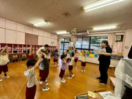 今日は4歳児がお話合わせて、体をしっかりと動かしました!数字に合わせて、イチゴやバナナ、きゅうりやゴリラさんに大変身☆