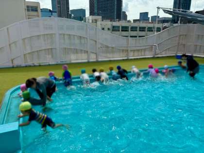 バタバタ!!バタ足、上手だね! 公開日 2024/07/16 更新日 2024/07/16 きょうのようちえん 今日はクラス全員でプールやプールサイドで遊べた4歳児。とても良い天気で気持ちよかったですね(^-^)vバタ足がどんどん上手になってきました! いいね(0)