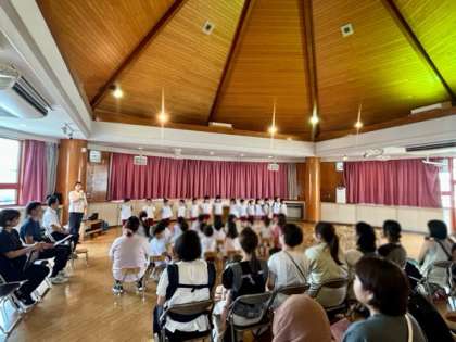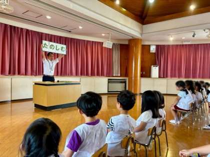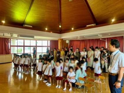 園長先生からの話を聞いたり、毎日歌っている歌をおうちの人に聞いてもらったりしました!楽しいことがいっぱいの夏休みになりますように(*´∀`)♪