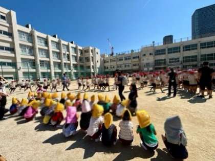 幼小合同避難訓練(その?) 公開日 2024/09/04 更新日 2024/09/04 きょうのようちえん 今日は幼稚園と小学校が、同時に非常ベルを鳴らしました。地震発生を想定した合同避難訓練です。 子どもたちは、防災ずきんを被り、2次避難場所の校庭まで避難してきました。真剣な眼差しで小学生が避難する姿を見ています。 いいね(0)
