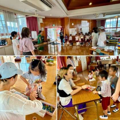 【9月6日】PTAバザースタート!その? 公開日 2024/09/07 更新日 2024/09/07 きょうのようちえん 最初のお客さまは、5歳児の子どもたち! おもちゃコーナーから、好きなものやきょうだいにプレゼントするものなど、1人3つ選びました。お店屋さんと上手にやりとりできました♪ いいね(0)