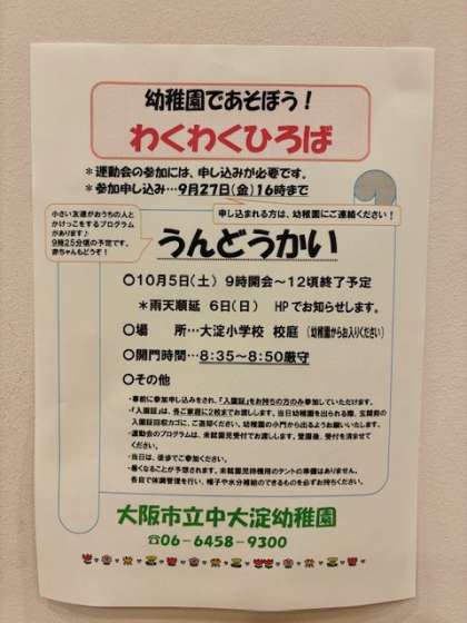10月5日(土)に中大淀幼稚園の運動会を行います!