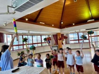 5歳児と先生で、『元気なかけ声対決』をしました。3回勝負をして、子どもたちが3勝(^-^)v