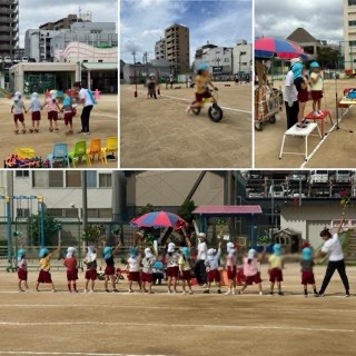朝から校庭で運動会ごっこをがんばりました!5歳児は2人組で司会係にも挑戦ヽ(^o^)