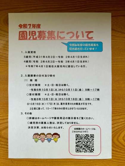 10月1日より令和7年度園児募集を行います。 お待ちしております♪