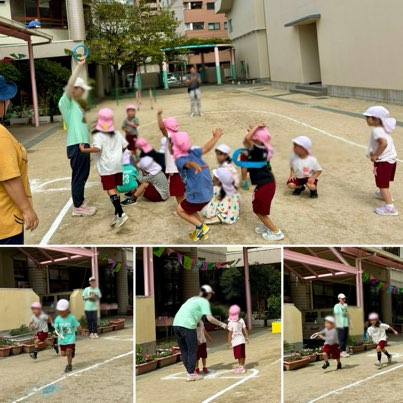 運動会ごっこが続いています! 公開日 2024/10/07 更新日 2024/10/07 きょうのようちえん 4歳児がリレー遊びを楽しんでいます。 5歳児のお兄さん、お姉さんが運動会でがんばる姿を見て、4歳児もやる気いっぱい!!今日は色チームが勝ちました。また、勝負しようね! いいね(0)