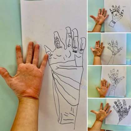 スケッチをしたよ 公開日 2024/10/21 更新日 2024/10/21 きょうのようちえん 5歳児が自分の手のスケッチをしました。 毎日見ている自分の手ですが、よく見ると…「しわしわがいっぱいある!」「線のところでグギッとするねん」と気づきがいっぱい! 身の回りの物をじっと見てみると、まだまだ発見がありそうですね♪ いいね(0)