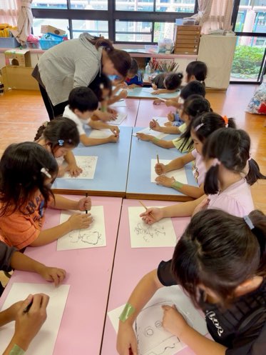手に力を入れて! 公開日 2024/10/22 更新日 2024/10/22 きょうのようちえん 5歳児が、スチレン版画の下絵をかきました! スチレン板にかいた絵が、どのような版画になるか楽しみですね♪ いいね(0)