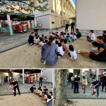 10月の避難訓練◆その1 公開日 2024/10/27 更新日 2024/10/27 きょうのようちえん 今月は、火災発生を想定した避難訓練を行いました。消防士さんに訓練の様子を見ていただき、お話や初期消火の仕方について、教えてもらいました! いいね(0)