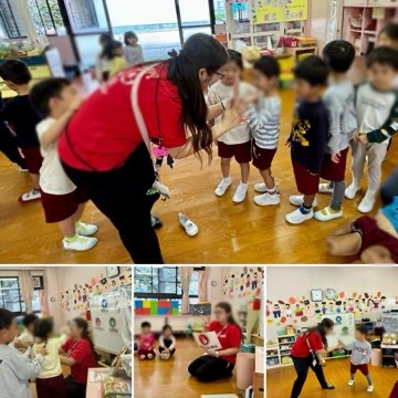 10月のえいごであそぼ! 公開日 2024/10/28 更新日 2024/10/28 きょうのようちえん 今日は4歳児の『えいごであそぼ』でした。英語で、ジャンケンを教えてもらいました!英語ジャンケンも楽しかったですが、先生のことが大好きで、まだまだ一緒に遊びたかった4歳児でした(*´∀`)♪ いいね(0)