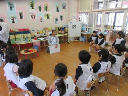 【11月1日】保健指導 5歳児 公開日 2024/11/05 更新日 2024/11/05 きょうのようちえん 日常によく起こりそうな場面を題材に、教員によるお芝居をしました。お芝居を見た後、友達のやり取りについて子ども達と考えました。お芝居の中で、演者がどんな気持ちになったか。また、言ったらダメな言葉や、どんな言葉で伝えたら良いかを一緒に考えました。 クラスで、仲良く過ごす方法を、これからも一緒に考えたいと思います。 いいね(0)