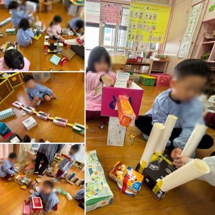 【11月7日】好きなものづくりスタート!! 公開日 2024/11/08 更新日 2024/11/08 きょうのようちえん 4歳児が様々な素材を使って、好きなものづくりを始めました。 素材を積んだり、並べたり、重ねたり、組み合わせたりしながら遊んできたので、「これもできそう!」「お母さんの化粧台にするねん」と、イメージを広げながらつくることを楽しんでいます♪ いいね(0)
