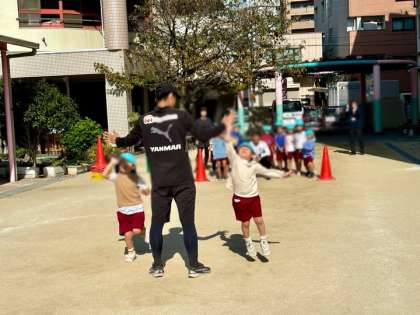 11月のアスレチックパーク(5歳児) 公開日 2024/11/13 更新日 2024/11/13 きょうのようちえん 大好きなコーチに会えて、とても喜んでいた5歳児!!今日も、元気いっぱいアスレチックパークに参加しました💪 今回は、『だるまさんがころんだ→まねっこ遊び→なかよしかいじゅうVSヒーロー勝負→かけっこタッチ』を行いました。5歳児は、「体の使い方が上手になったね!」とほめていただきました✨ 次は、ボール遊びができるかな!? いいね(0)