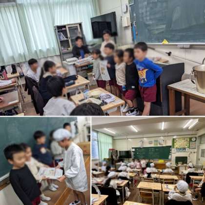 5歳児が3チームに分かれて、1年生から5年生の各クラスにしゅっぱーつ!!