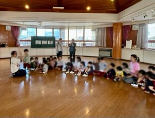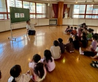 今月は、初めて5歳児と4歳児が一緒にえいごであそぼうを楽しみました。♪かもつれっしゃの歌で、みんな広い場所にしゅっぱーつ!じゃんけんペアができたら、『rock・scissors・paper』でじゃんけん勝負!!誰が今日の運転手になれたかな(^-^)