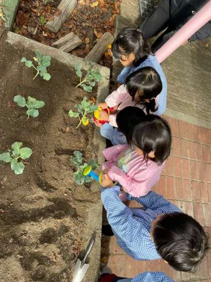 最後はみんなでお水をあげて、「おおきくなーれ♪」とおまじないをかけてあげましたよ!