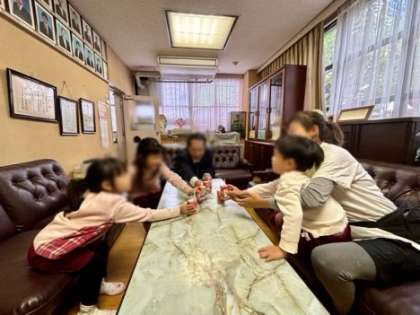 誕生会当日…まずはお誕生日の友達とりんごジュースでかんぱーい!!