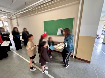 大淀小学校内の9つの場所をグループごとに回りました。クイズあり、イングリッシュじゃんけんあり!!