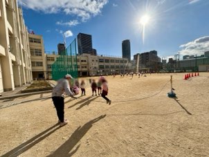 みんなぽっかぽか! 公開日 2024/12/09 更新日 2024/12/09 きょうのようちえん 冷たい北風が吹いていますが、4歳児は長縄跳びに挑戦中!跳ぶ友達も応援する友達も、縄を回す先生もみんな体がぽっかぽかですヽ(^o^) いいね(0)