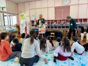 冬のお話を聞かせてくださいました☆ 公開日 2024/12/17 更新日 2024/12/17 きょうのようちえん 昨日、『絵本の会』がありました♪絵本の会北の皆さんが、ステキな冬のお話やエプロンシアター、手遊び、そして今の時期にぴったりのもちつき遊びも教えてくれました(^-^) いいね(0)