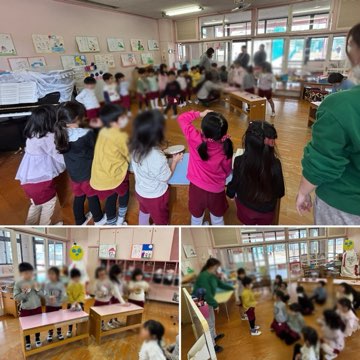 初めてのお客さま☆ 公開日 2025/01/23 更新日 2025/01/23 きょうのようちえん 5歳児が合奏をしていると、4歳児が楽しそうな音に誘われて、 保育室を覗きに来ました♪合奏を聞いてもらうのが初めての5歳児。ちょっぴりドキドキしながらがんばりました(^-^) いいね(0)
