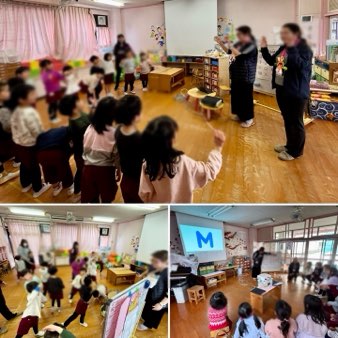 『さいご』がつづくね… 公開日 2025/03/11 更新日 2025/03/11 きょうのようちえん 今年度さいごの『えいごであそぼ』です。 今回は、アルファベットで遊びました♪アルファベットの歌を歌ったり、アルファベットに変身したり。今回も子どもたちの楽しんでいる声が絶えない、『えいごであそぼ』になりました(*´∀`) お二人の小学校の先生、毎回楽しい活動をしてくださり、ありがとうございました☆子どもたちは、先生方が大好きです! いいね(0)