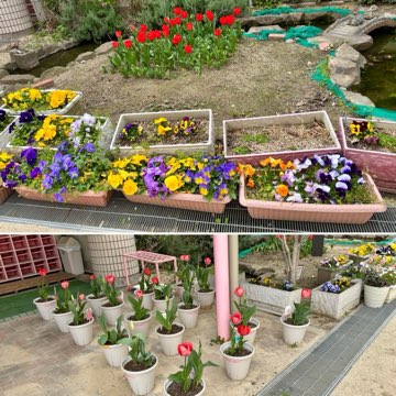 子どもたちがおうちの人と植えたチューリップが、毎日咲き続けています!今は赤色のチューリップがたくさん咲いています(^-^)この後、黄色や白色のチューリップが咲くことでしょう。楽しみですね☆