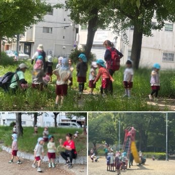浦江公園にレッツゴー☆ 公開日 2025/05/16 更新日 2025/05/16 きょうのようちえん 浦江公園では、みんなで草むら探検をしたり、シロツメクサの冠やブレスレットをつくったり、おにごっこや遊具で遊んだり。一人一人が好きな遊びを見つけて、存分に楽しむことができました! いいね(0)