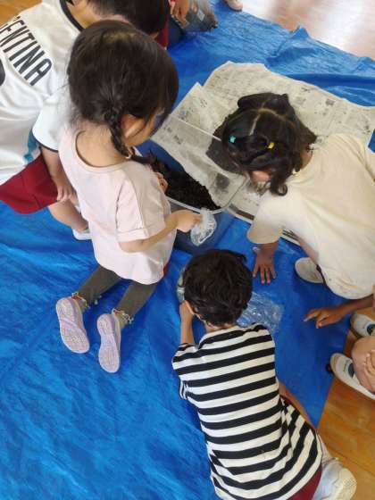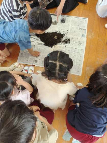 カブトムシの幼虫がやってきました!どんなものを食べるのかな、どんなふうに土の中ですごすのかな、などいろんなことが気になります。早速カブトムシの幼虫が過ごしやすいお家をつくっています。