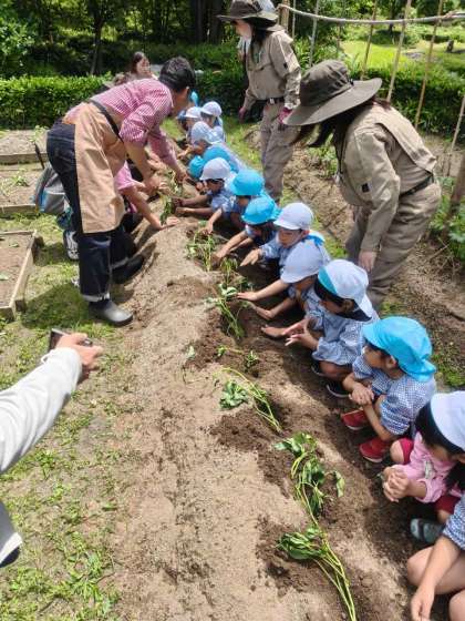 いつもの園庭遊びとは違う雰囲気を感じたからかもしれませんが、畑の土を触る経験ができました。近くを通ったときはぜひ育っているところを見ていただけたらと思います。