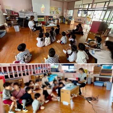 5歳児が、カブトムシ、ホタル、チョウチョ、テントウムシが孵化する様子の動画を見ました。どんどん姿、形を変えていく虫たちに、「色が変わった!」「服脱いだな!」「わ、こんなん初めて見た!」「こんなんになるんや」と一つ一つの過程に驚きを隠せません。