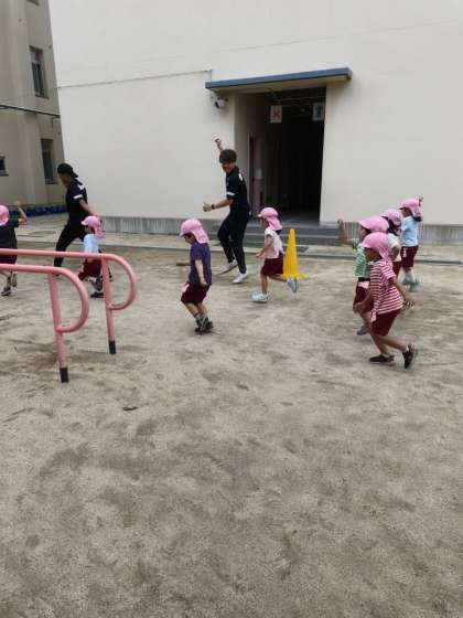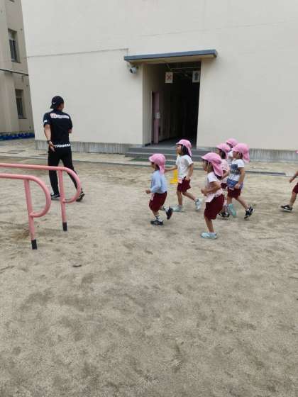 今日もセレッソ大阪のしまうまコーチがアンディコーチといっしょに来てくださいました。走ったり飛んだりしてしっかり体を動かして遊んでいます!