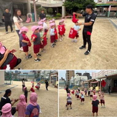 さらに、しまうまコーチが投げるビブスをキャッチ!!と、少しずつ難しくなっていく動きにもみんなで挑戦しました(*^_^*)