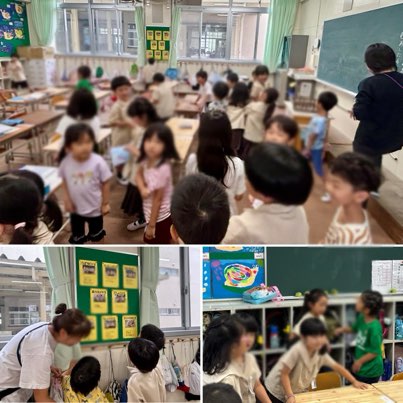 23日のアイスブレイク!後編 公開日 2025/06/24 更新日 2025/06/24 きょうのようちえん 一緒に遊んで楽しかった5歳児は、お見送りと言いつつ4組の教室へ!!先ほど遊んだ友達と机の中身や当番表、自分がかいたカタツムリの絵の話をしてくれました♪ ありがとうございましたヽ(^o^) いいね(0)