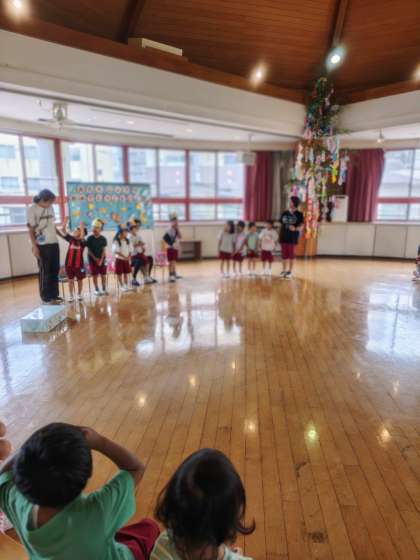 今日は7月生まれのお友達の誕生会を行いました。おめでとうがいっぱい、プレゼントいっぱい、笑顔いっぱいの楽しい時間でした。