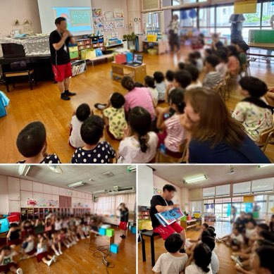 7月のえいごであそぼ! 公開日 2025/07/10 更新日 2025/07/10 きょうのようちえん 今回は小学校の先生が、前回の歌遊びと英語の絵本を読んでくださいました♪子どもたちは、「head-shoulders-knees and toes〜」と前回の歌をよく覚えていて、みんなで歌うことができました。そして、初めての英語の絵本!真剣に見て、聞いて、考えていました(^-^) いいね(0)