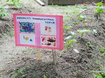 新梅田シティ散歩3 公開日 2022/06/17 更新日 2022/06/17 きょうのようちえん 帰る前に里山に寄りました。さつまいもの苗を植えてもらったところにクラスでつくった看板を立ててきました。またお近くを通った時は見てくださいね。 いいね(0)