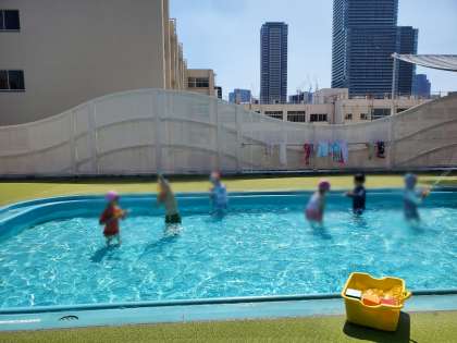 7月1日 プール遊び 公開日 2022/07/01 更新日 2022/07/01 きょうのようちえん 今日のうさぎ組は、プールで水鉄砲をして遊びました。お空に向かって水をかけることを楽しんでいました。きりん組の浮き輪で遊んでいる子どもの中には、ビート板のようにして泳いでいる子どもの姿も見られました!! また、来週も水の感触を存分に味わいながら遊ぼうね。 いいね(0)