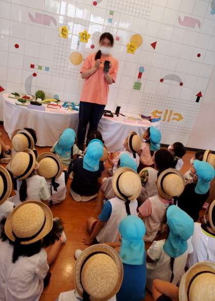 園舎の玄関に七夕のお供えをしています。クラスの先生から、お供えをなぜするのか話を聞きました。七夕の日には3年生と交流する予定です。楽しみですね!!
