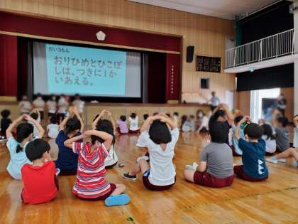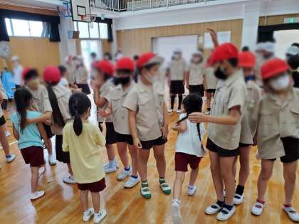 今日は3年生と幼小交流の七夕遊びをしました。絵本の読み聞かせをしてくれたり、まるばつゲームや、七夕じゃんけんゲームをして遊んだりしました。じゃんけんに勝つと最後に手作りのかわいい飾りのプレゼントをもらって子どもたちも嬉しそうにしていました!楽しい交流ができてよかったです。